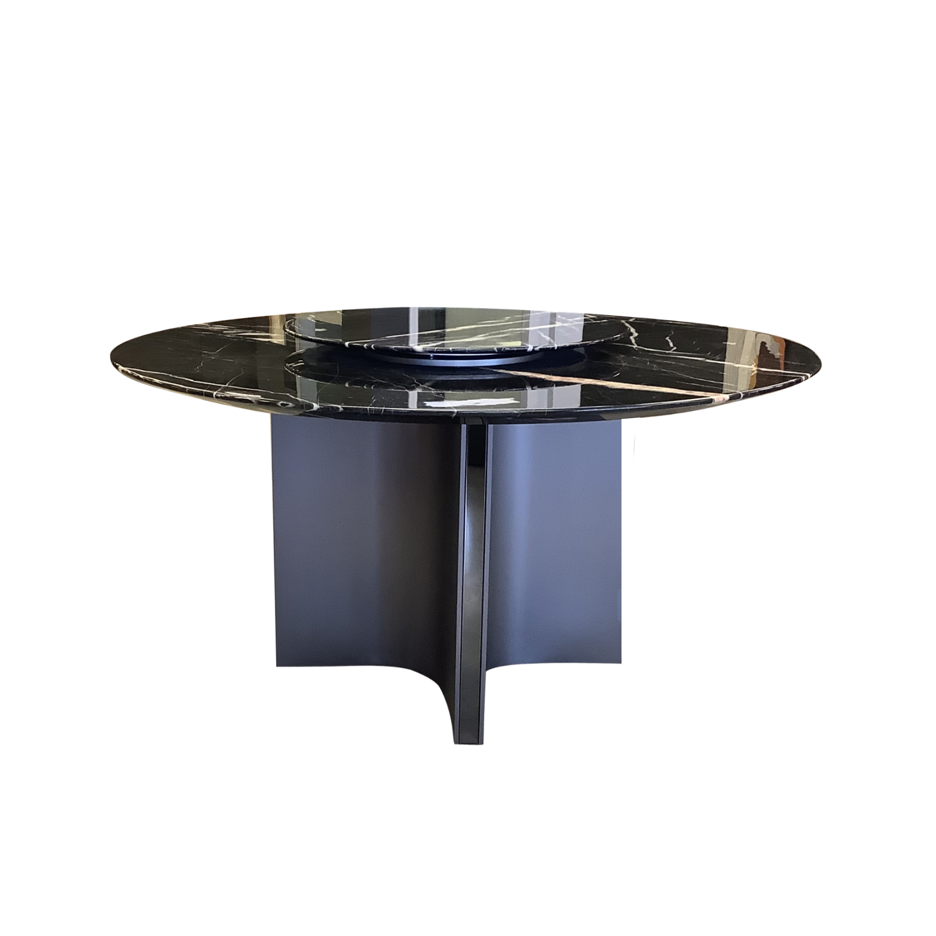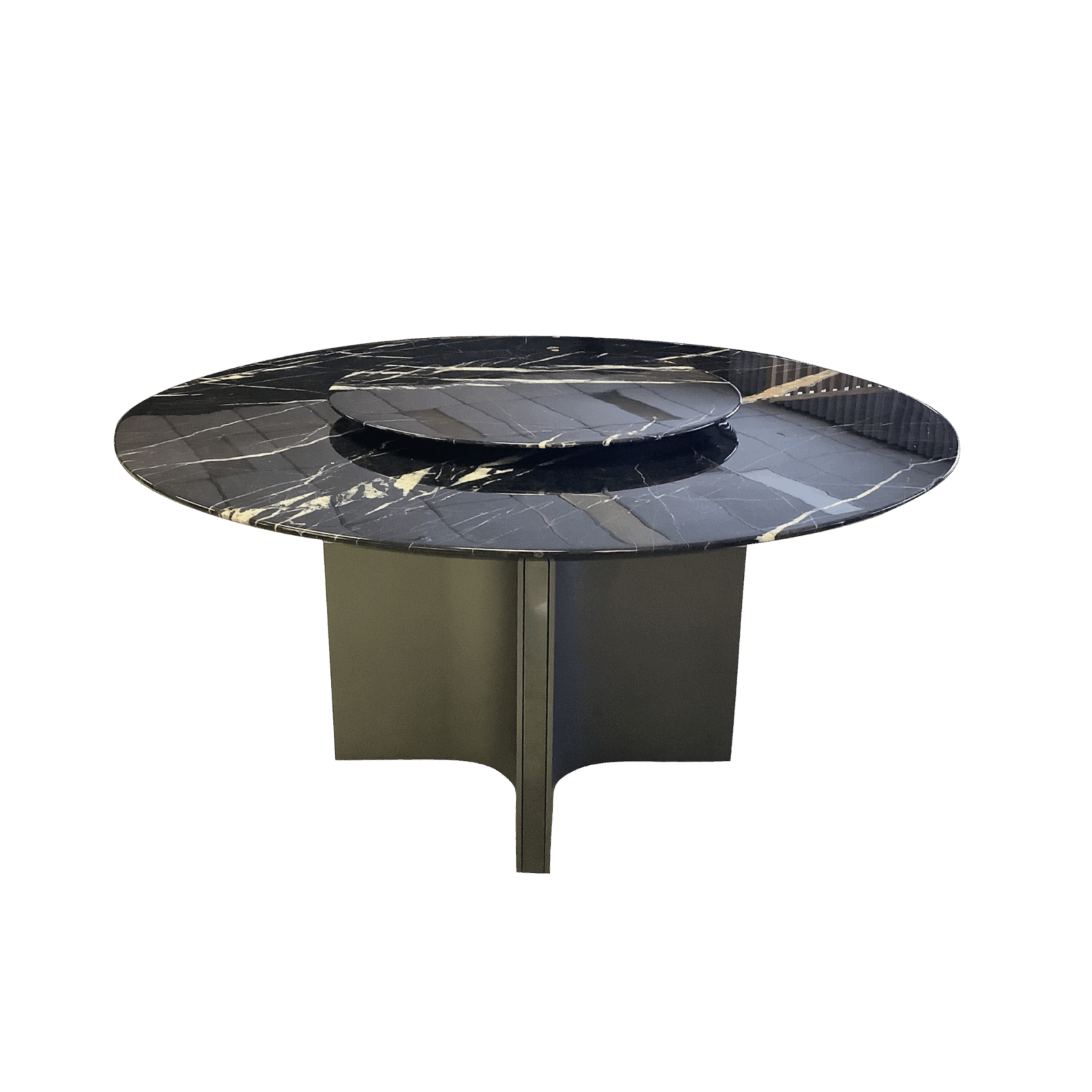 BLACK & WHITE MARBLE LAZY SUSAN ROUND DINING TABLE TOP ONLY D1500 + D760