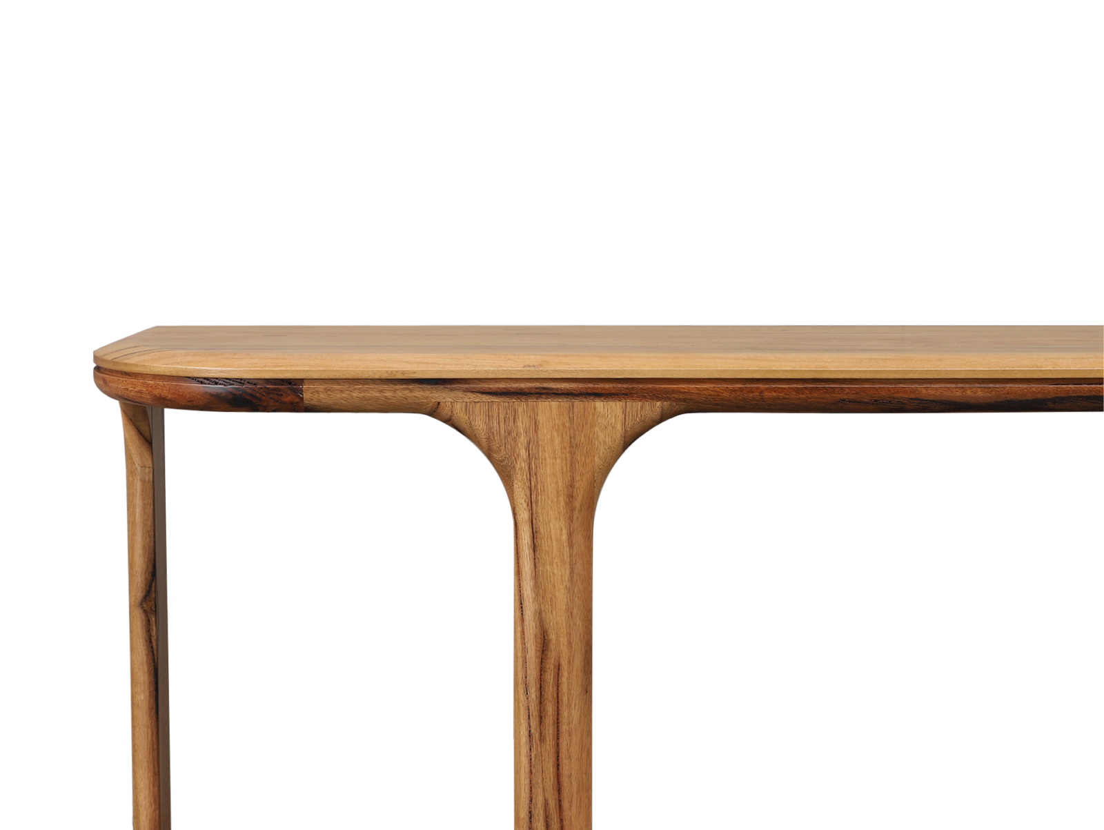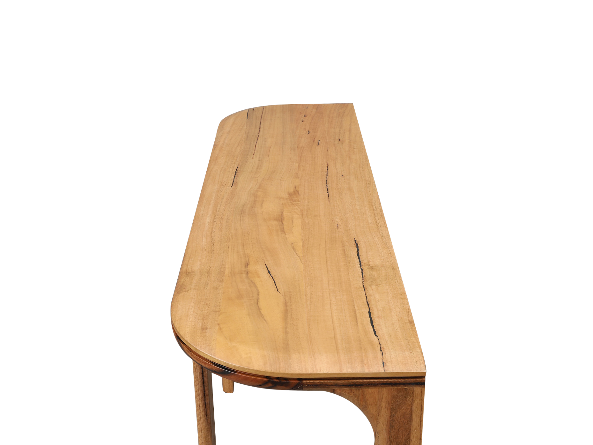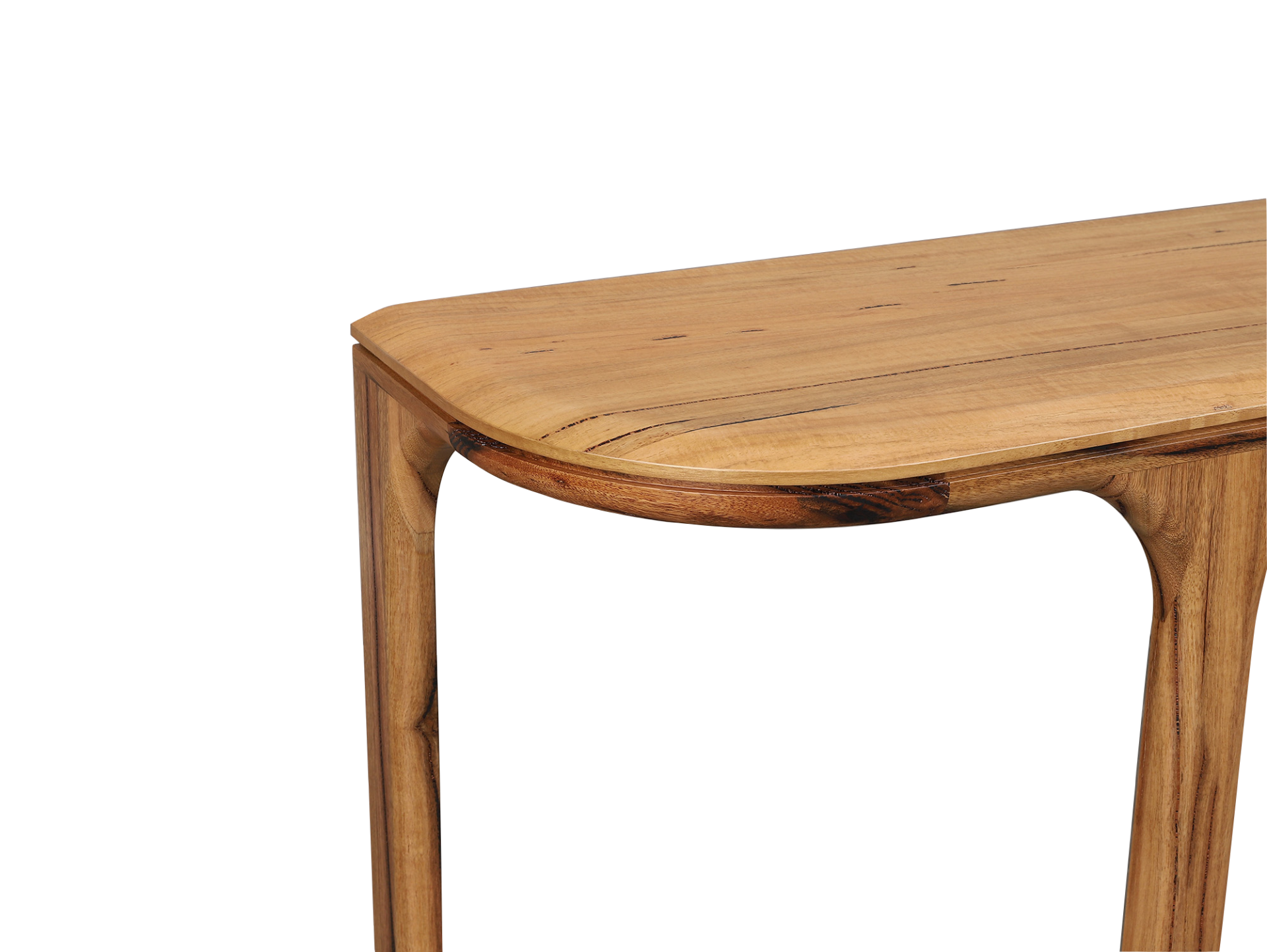 The Marri Console Table is a sculptural minimalism, defined by sweeping radius-curved ends that transform solid timber into a fluid, continuous form.