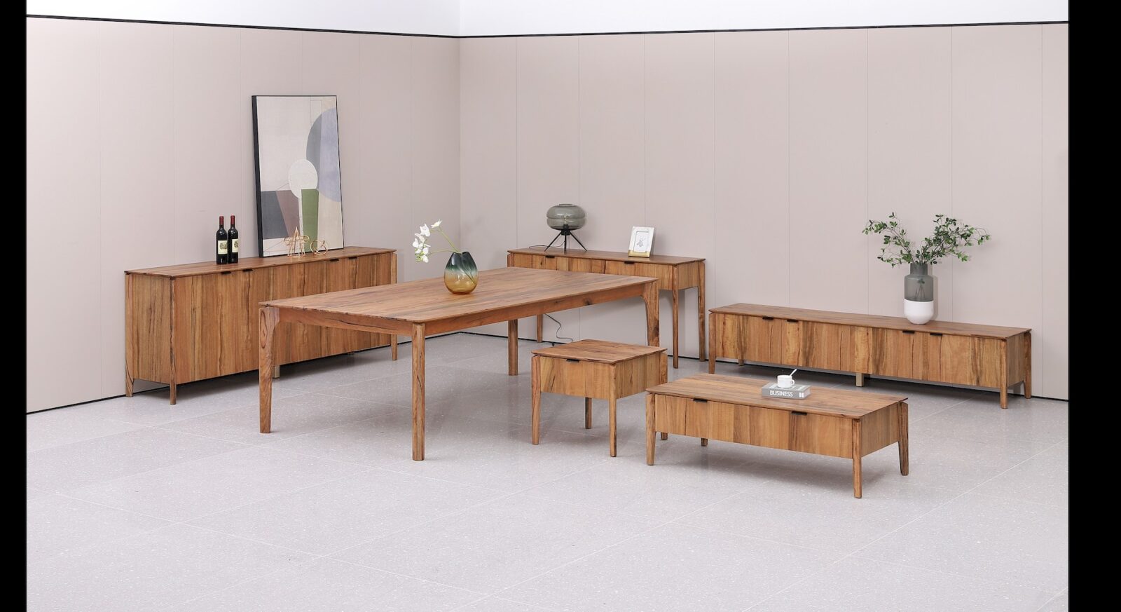The Moreton Dining Table is a stunning piece of solid wood furniture crafted from unique marri wood with its rounded, floating corners, blending natural elegance and contemporary design for timeless sophistication.