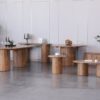 Its cylindrical legs provide a sleek foundation, while the rich grain showcases the beauty of natural wood. A small piece, it brings vibrant personality to your living room, merging function with artistic elegance.