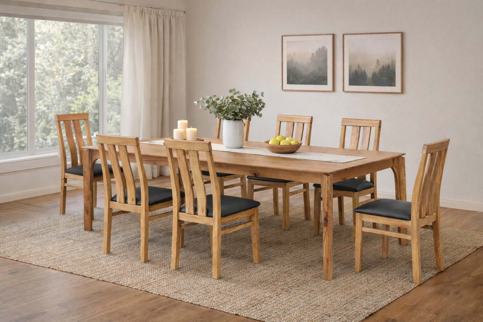 Luna DINING CHAIR Marri & Leather, High Back, Black